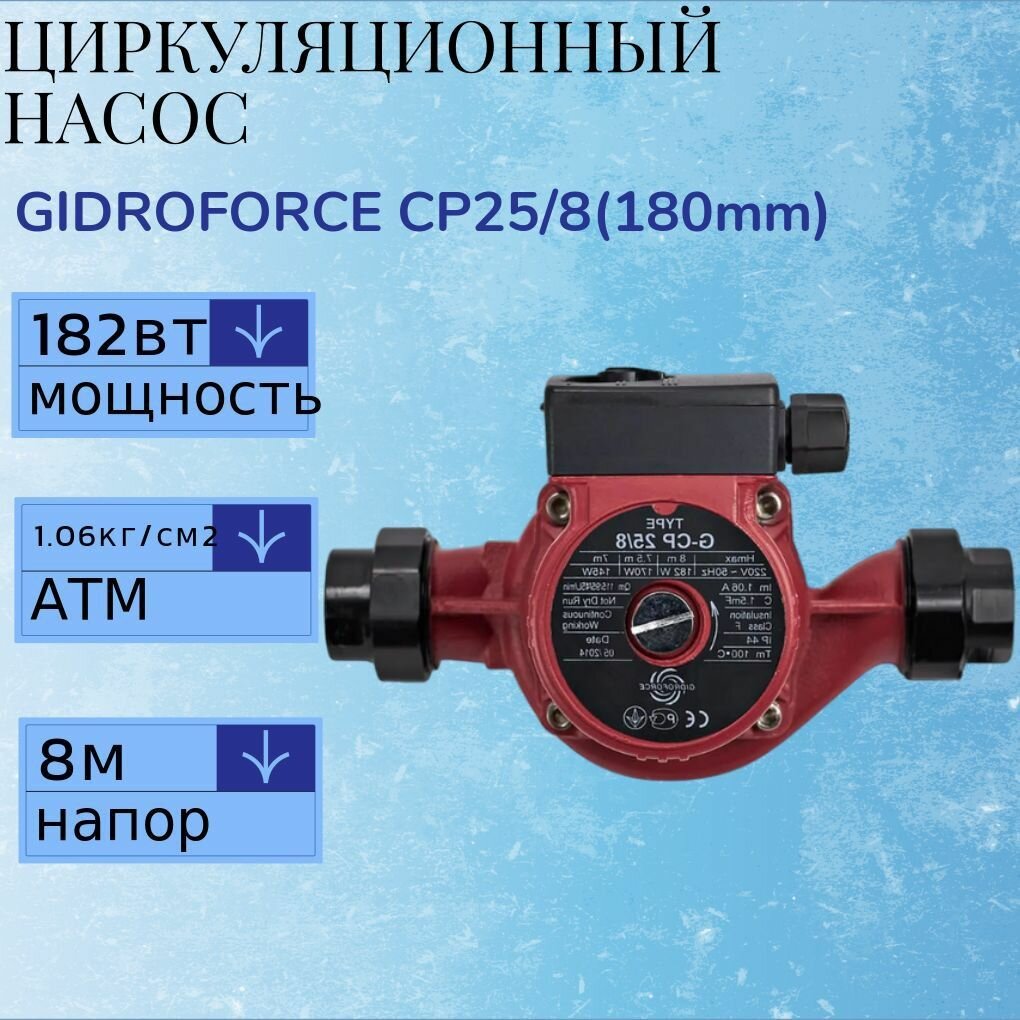 Циркуляционный Насос GIDROFORCE CP25/8(180mm) трехскоростной с гайками для отопления / для дачи информация: