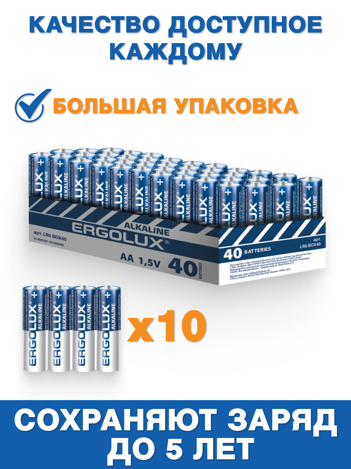 Ergolux LR6 Alkaline BOX40 (промо, , батарейка,1.5В) ERGOLUX LR6 BOX40 (1 упак)