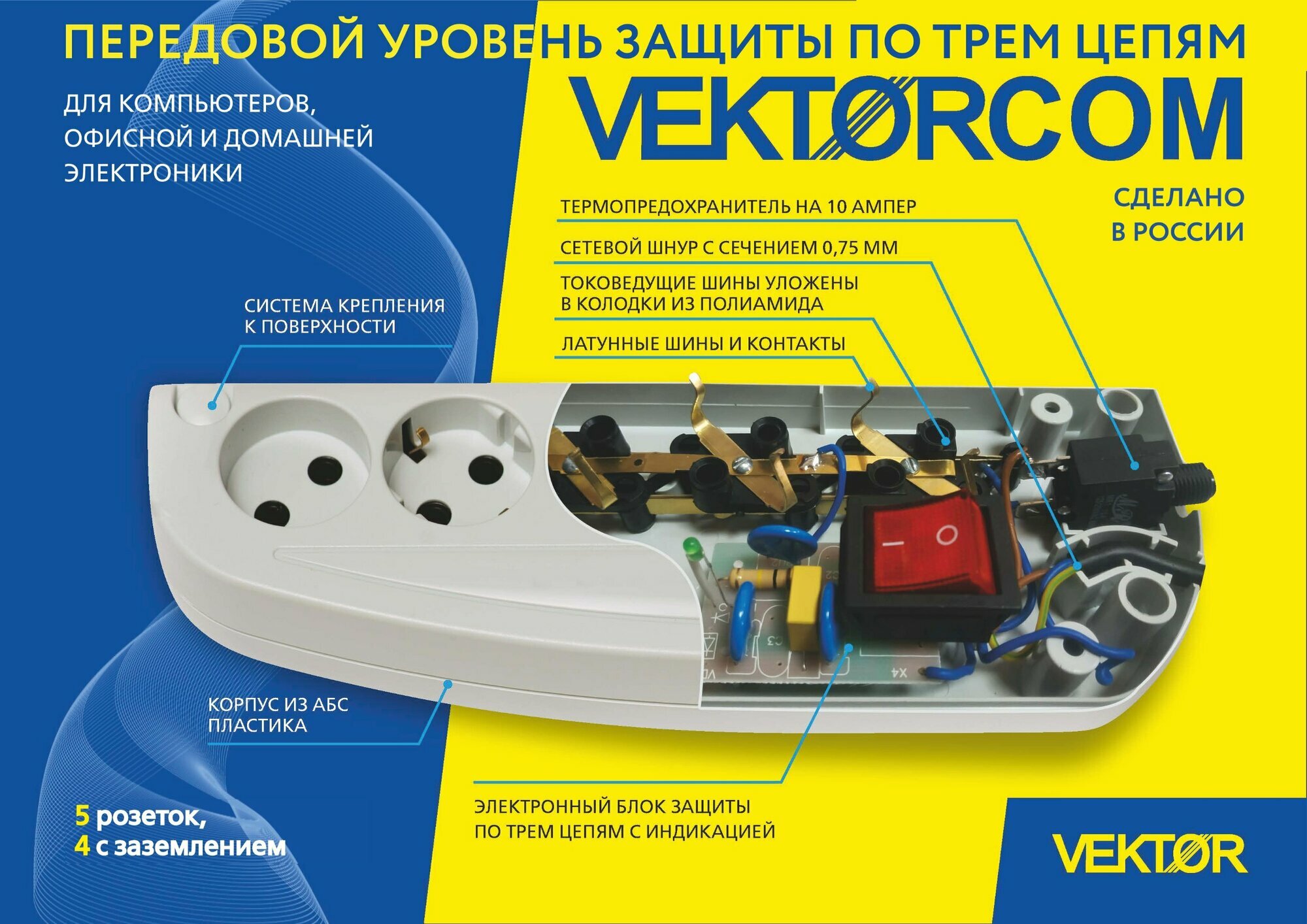Сетевые фильтры Vektor Сетевой фильтр Vektor COM белый 3м (компьютерный) информация: