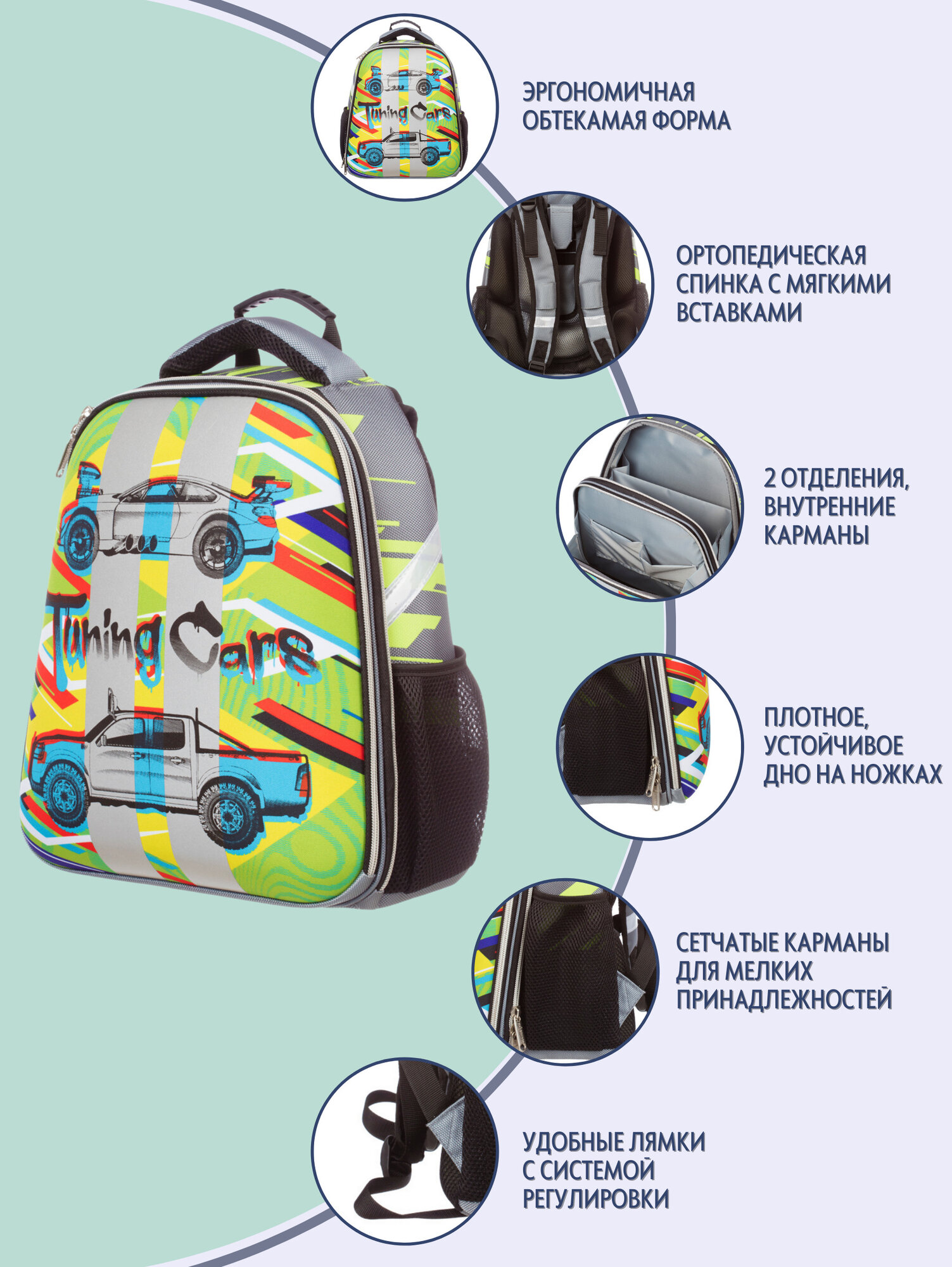 Школьный рюкзак №1School Basic Tuning Cars с ортопедической спинкой (серый) информация: