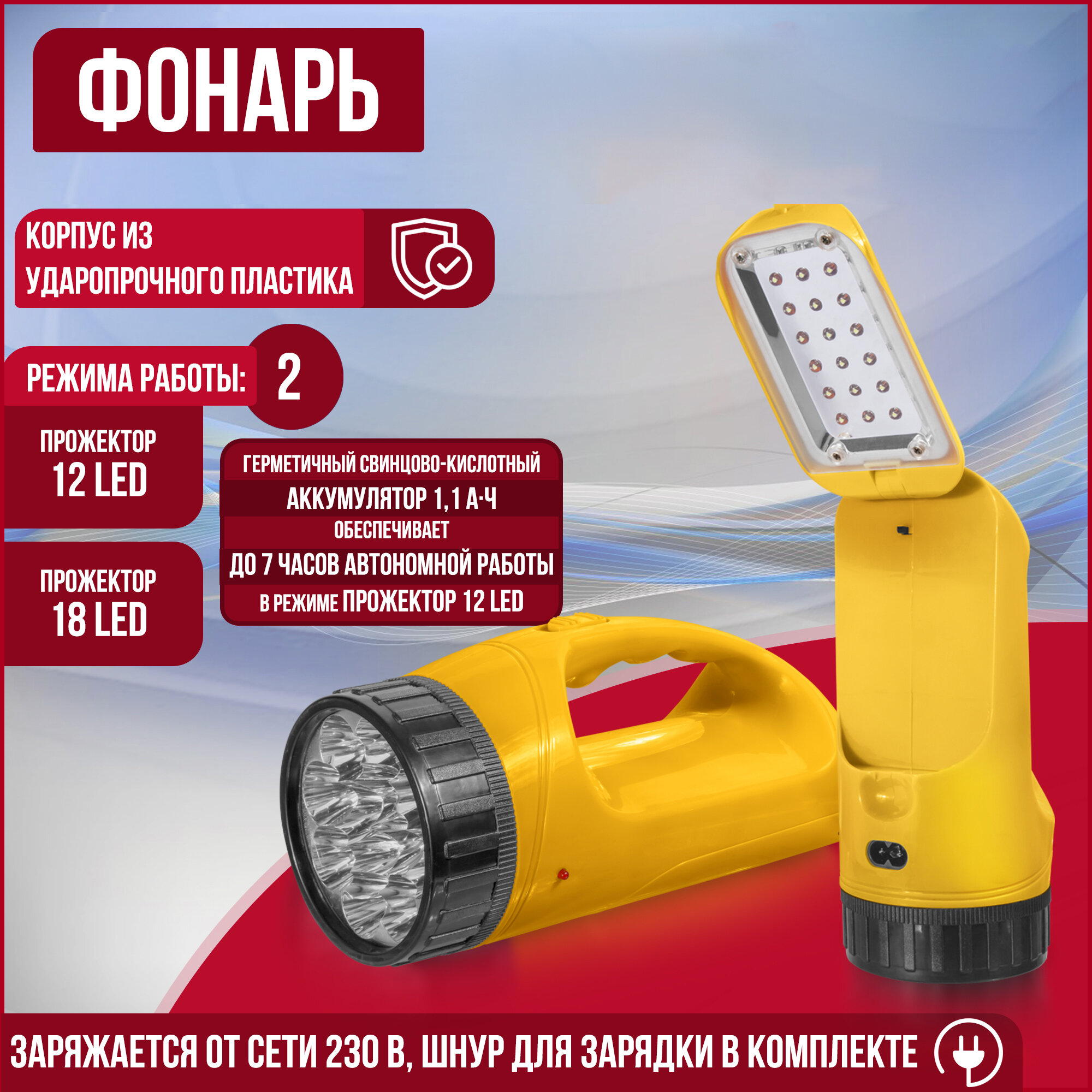 | Особенности | ударопрочный корпус / прожектор |