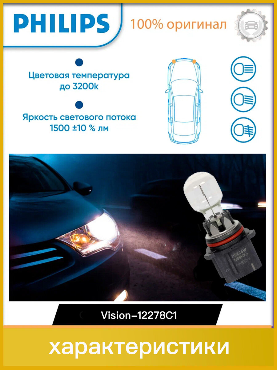Отзывы на Лампа автомобильная галогенная Philips Standard 12278C1 PSX26W 12V 26W PG18.5d-1 3000K 1 шт.