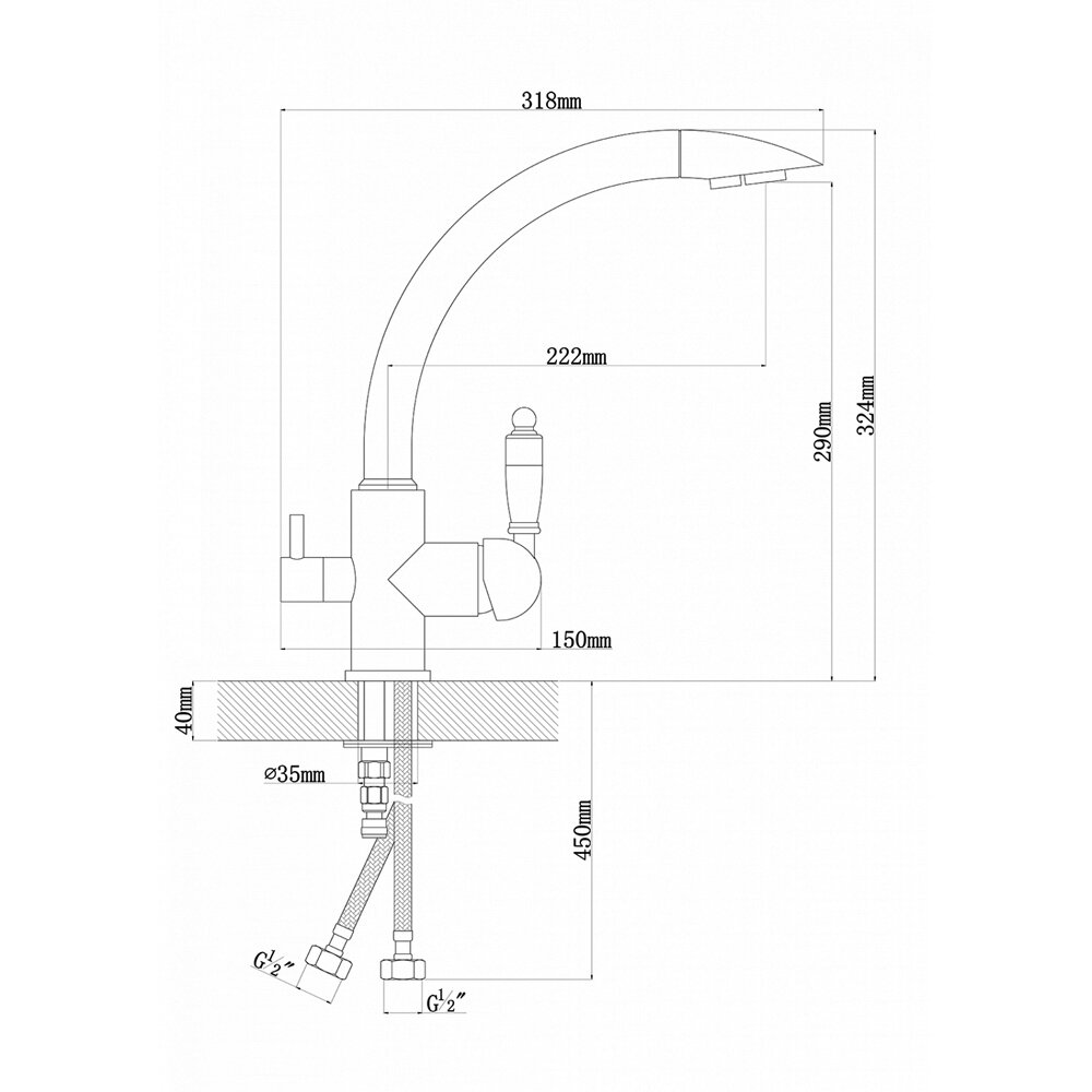 Смеситель для кухни с подключением к фильтру с питьевой водой из нержавеющей стали SUS304 Calorie CAL50116-3