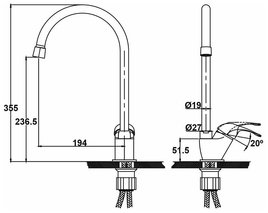 | Тип подводки | гибкая |