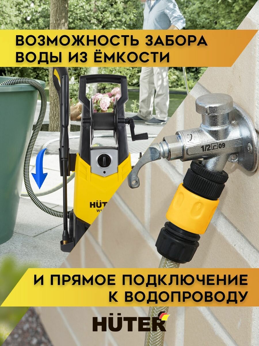 10 цен на Мойка высокого давления Huter W165-QL, минимойка (165 бар, 1900 Вт, с функцией самовсасывания), автомойка, керхер