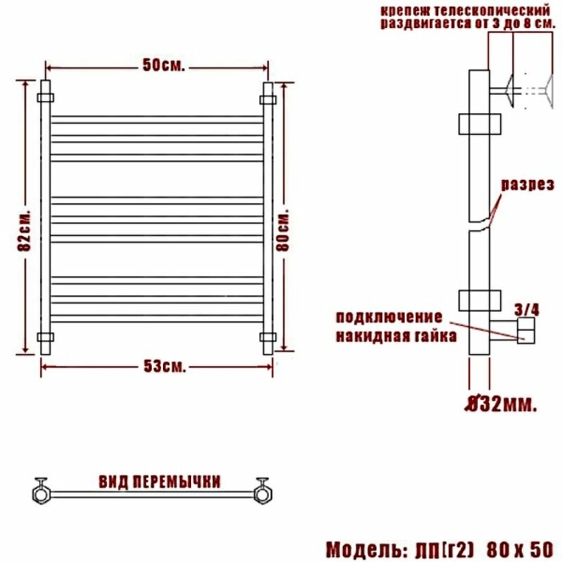 Водяной полотенцесушитель / Сушилка для ванной Ника Classic ЛП (Г2) 80/50 Белый матовый информация: