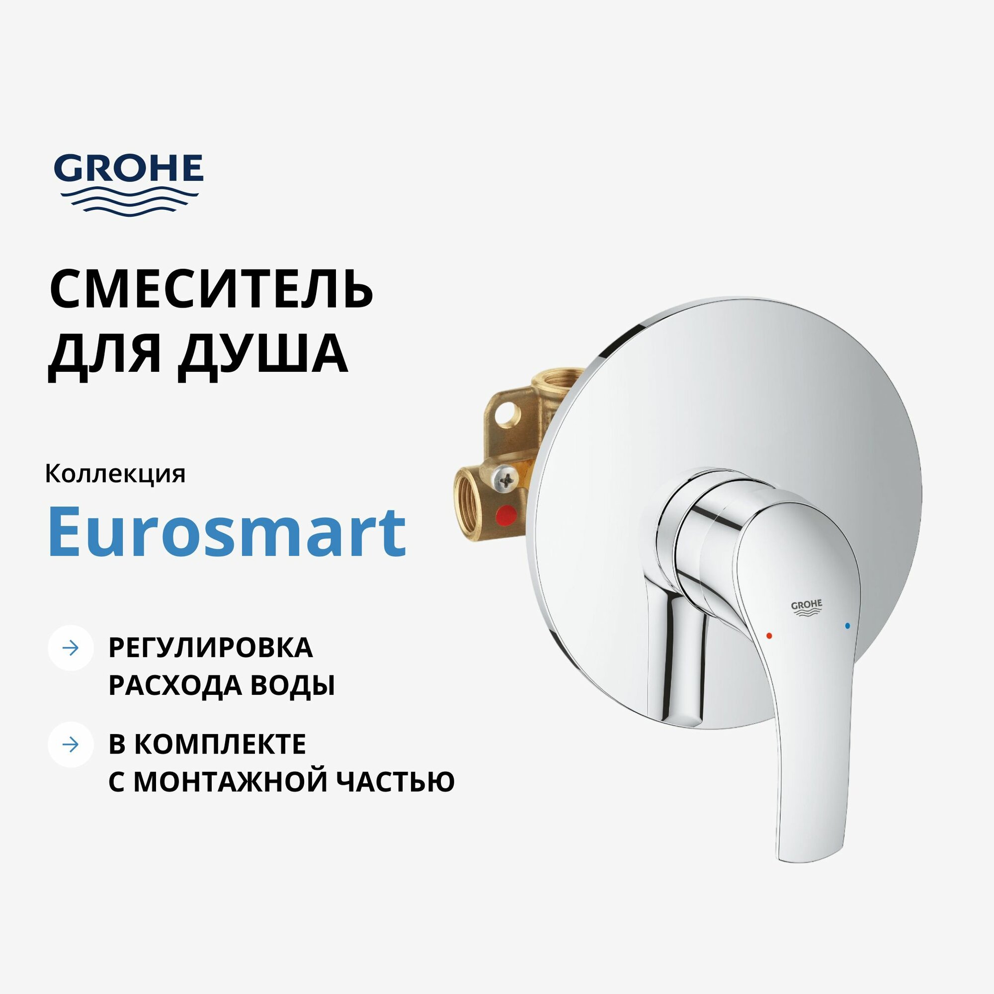 Смеситель для душа GROHE Eurosmart скрытого монтажа, в комплекте с монтажной частью, хром (33556002)