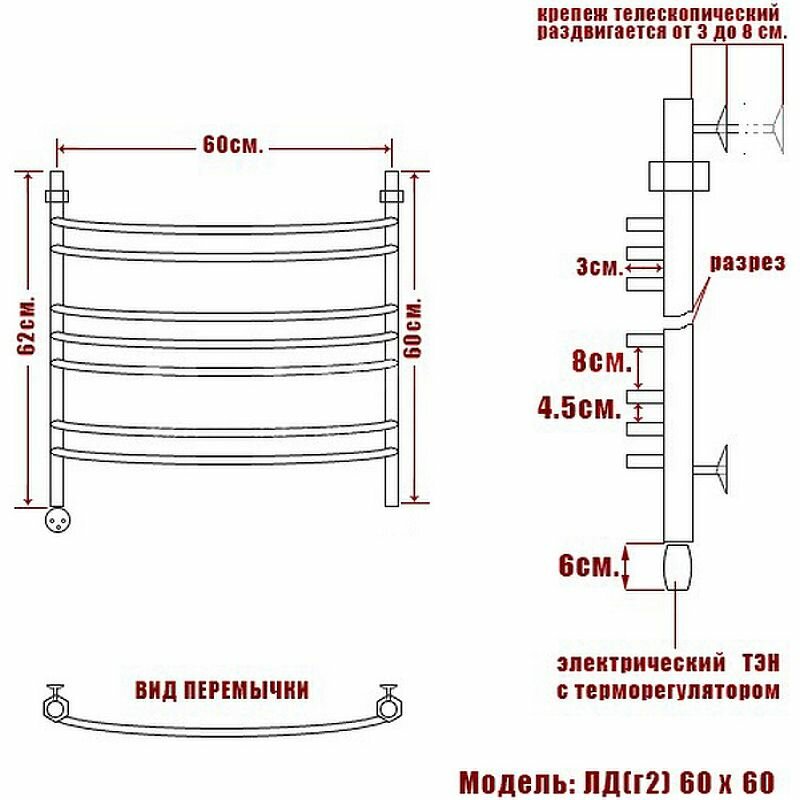 Отзывы на Электрический полотенцесушитель / Сушилка для ванной с теромрегулятором Ника Arc ЛД (Г2) 60/60 Хром