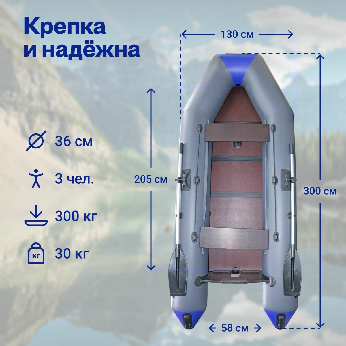 Лодка ПВХ под мотор надувная ЛП 300 СК Лайт с жёстким полом и килем для рыбалки, сине-серая 41 744 ₽