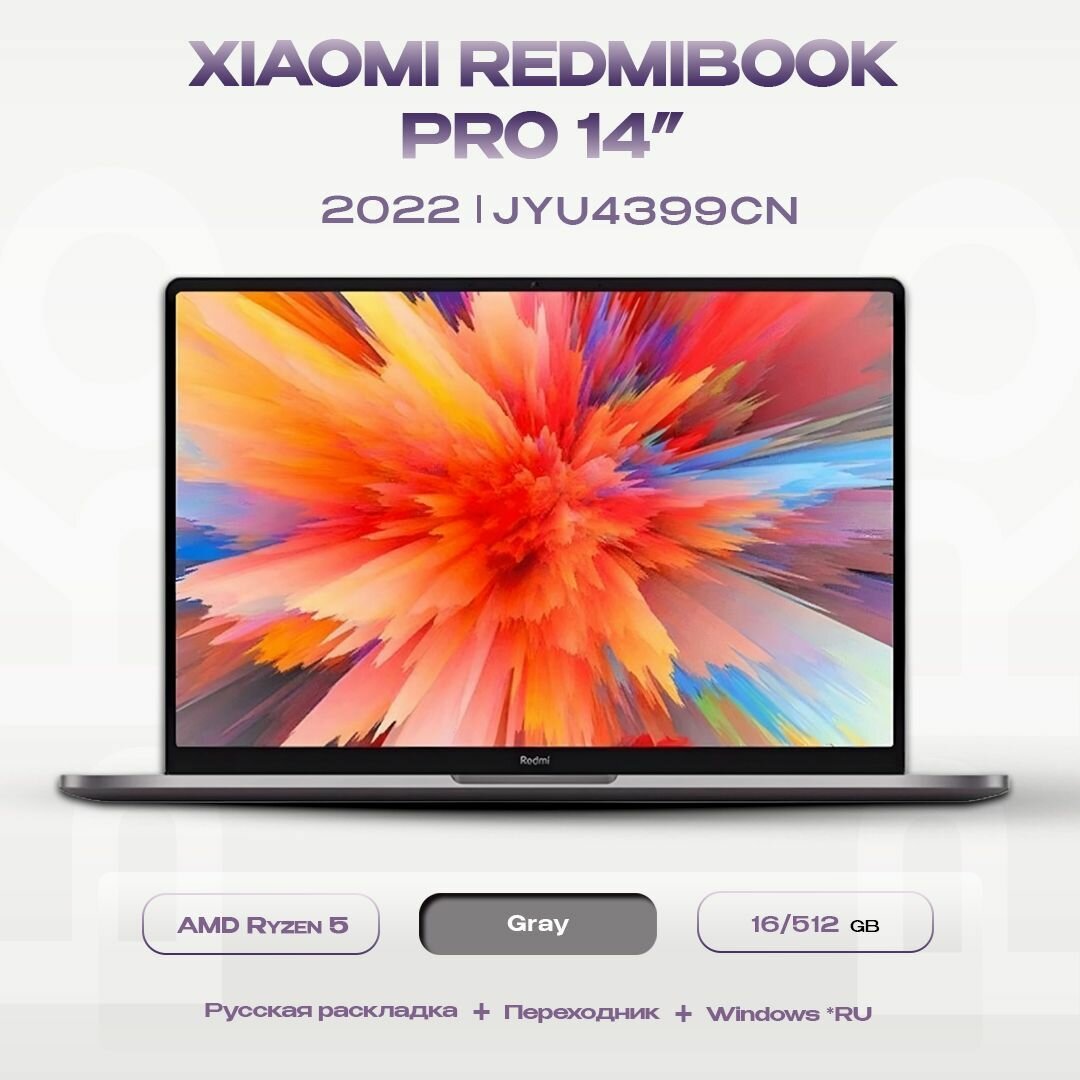 Xiaomi Ноутбук Xiaomi RedmiBook Pro 14 Ryzen R7-6800H /14/16GB/512GB SSD/Windows 10) JYU4471CN (Серый)