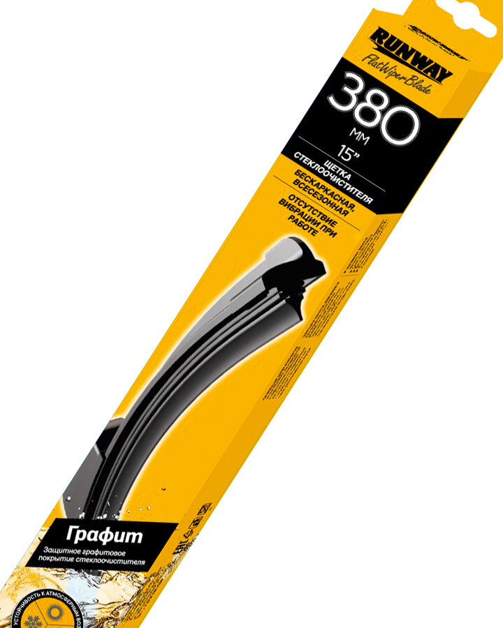 Щетка стеклоочистителя 380мм бескаркасная с графитовым покрытием, RUNWAY, RW-15G информация: