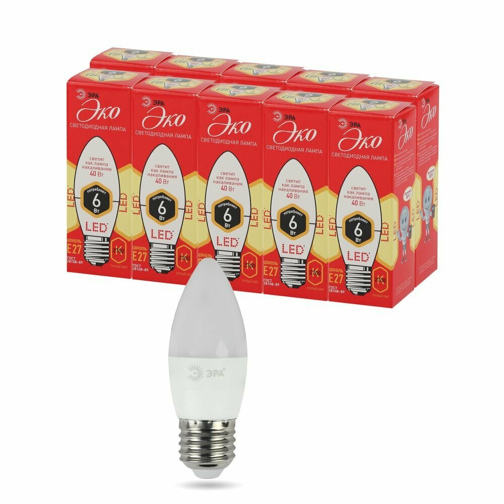Комплект из 10 светодиодных ламп ЭРА ECO LED E27 6W 2700К (теплый) информация:
