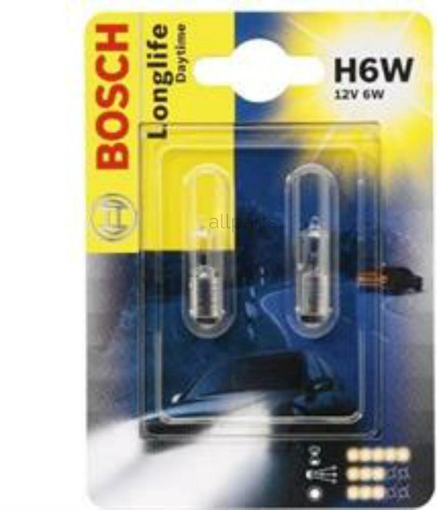 BOSCH 1987301061 лампа! (H6W) 12V 6W BAX9s галоген. увеличенный срок службы, в блистере\ информация: