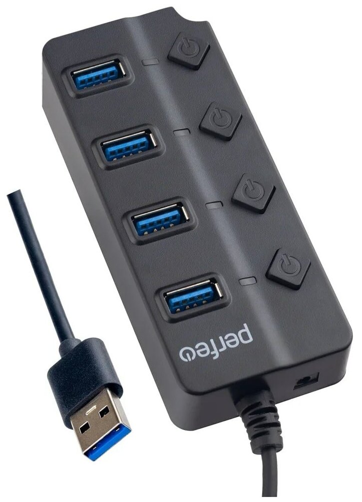 10 цен на Картридер USB - Xaб Perfeo PF-H032 4 порта,USB 3.0 (черный)