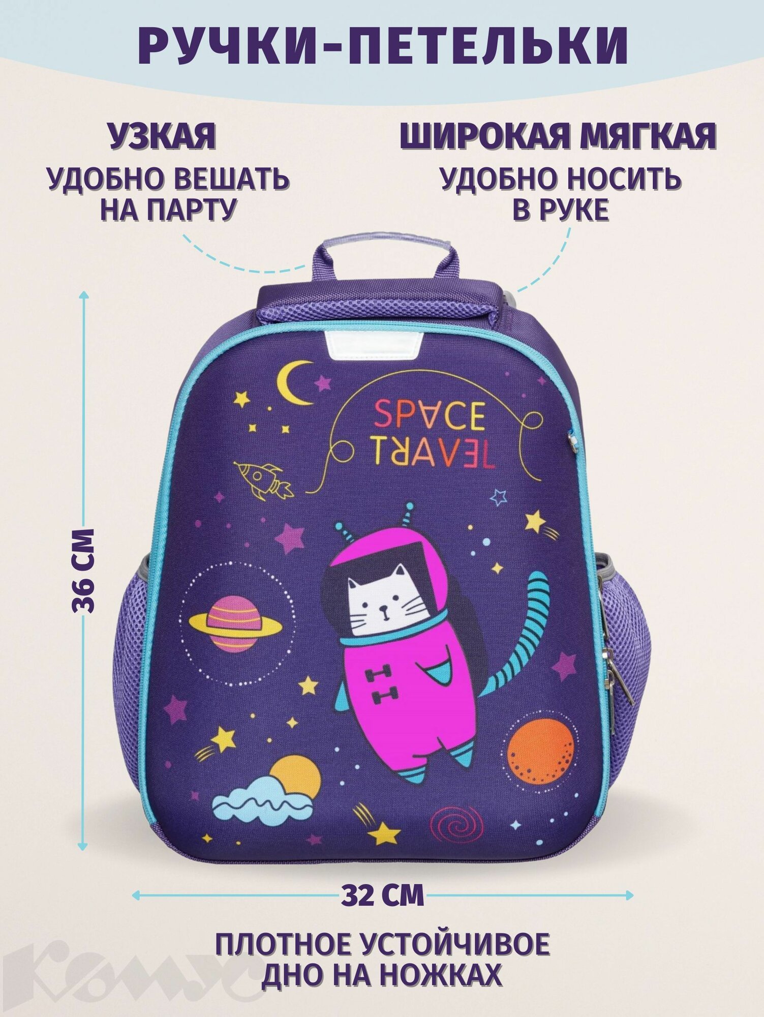 Ранец школьный Комус Класс Кот-космонавт, анатомический, 2 отделения, 4 кармана информация: