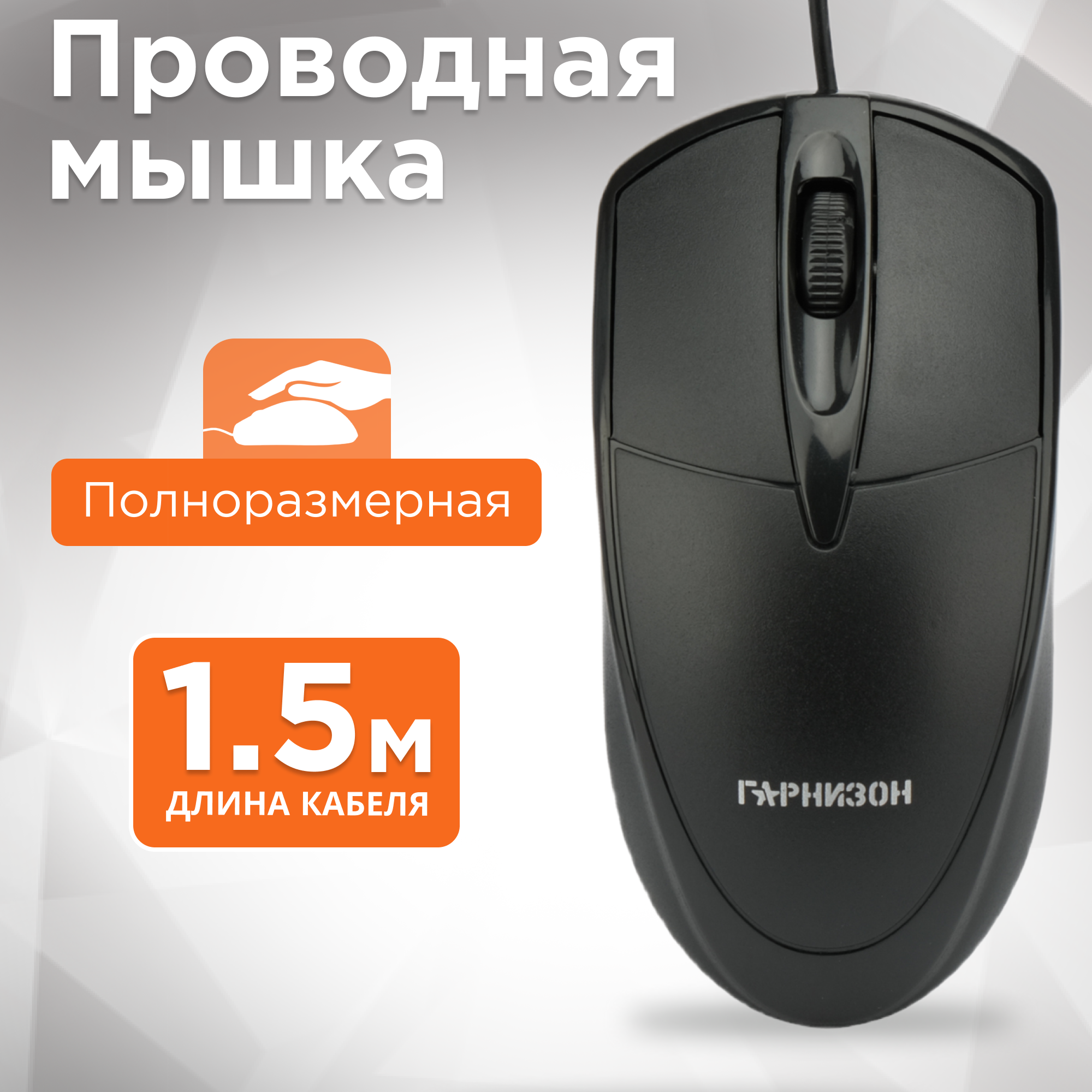 Проводная мышь Гарнизон черная 1000 DPI с оптическим сенсором 1.5м GM-225 информация: