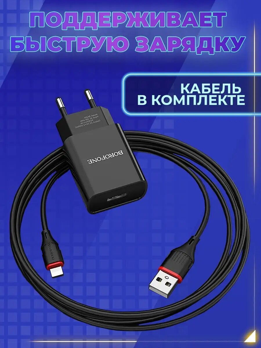 Сетевое зарядное устройство+кабель Type-C Borofone BA20A Sharp, 1USB, 2.1A, черный (02142) 390 ₽