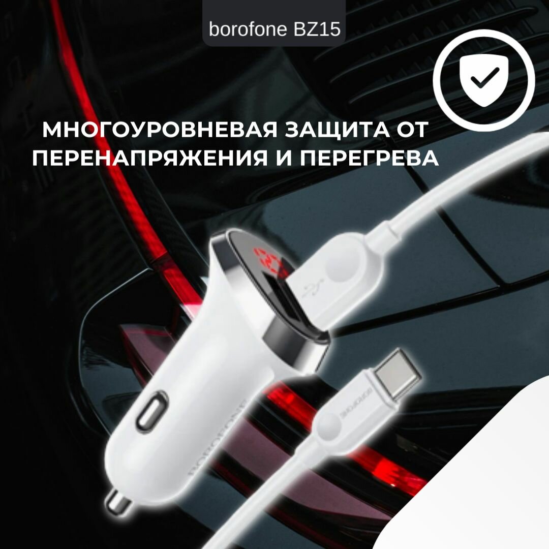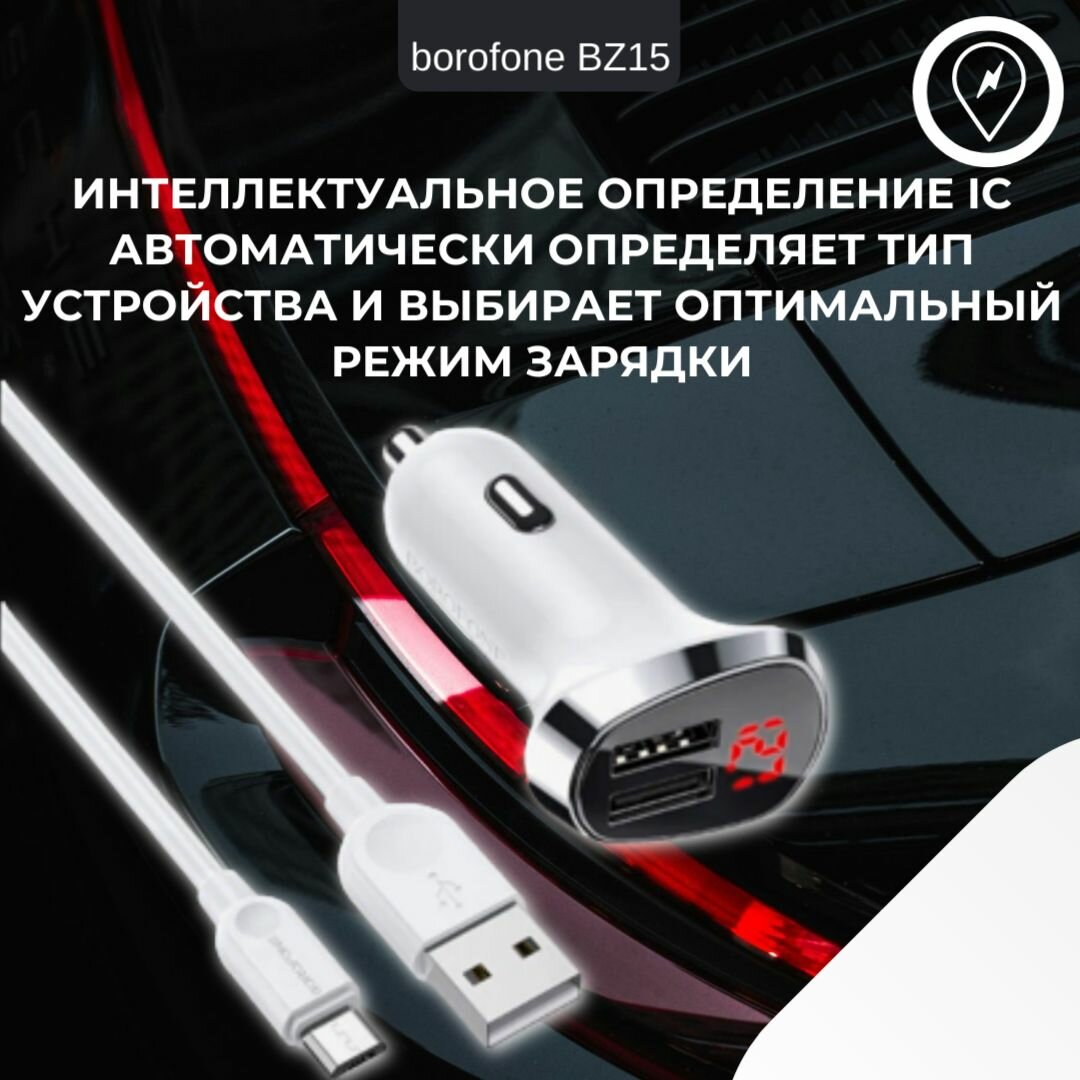 Автомобильное зарядное устройство с вольтметром borofone BZ15 (белый) информация: