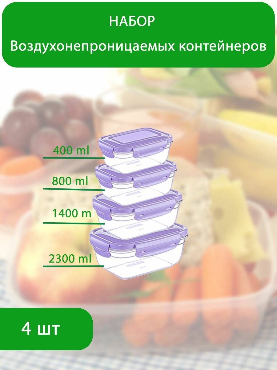 Воздухонепроницаемый прямоугольный пластиковый контейнер Набор (400-800-1400-2300)мл 1 424 ₽