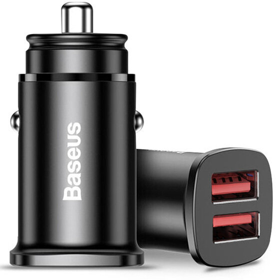 Автомобильное зарядное устройство 2xUSB Baseus Square metal A+A 30W Dual QC3.0 Quick Car Charger (QC3.0/SCP/AFC), black