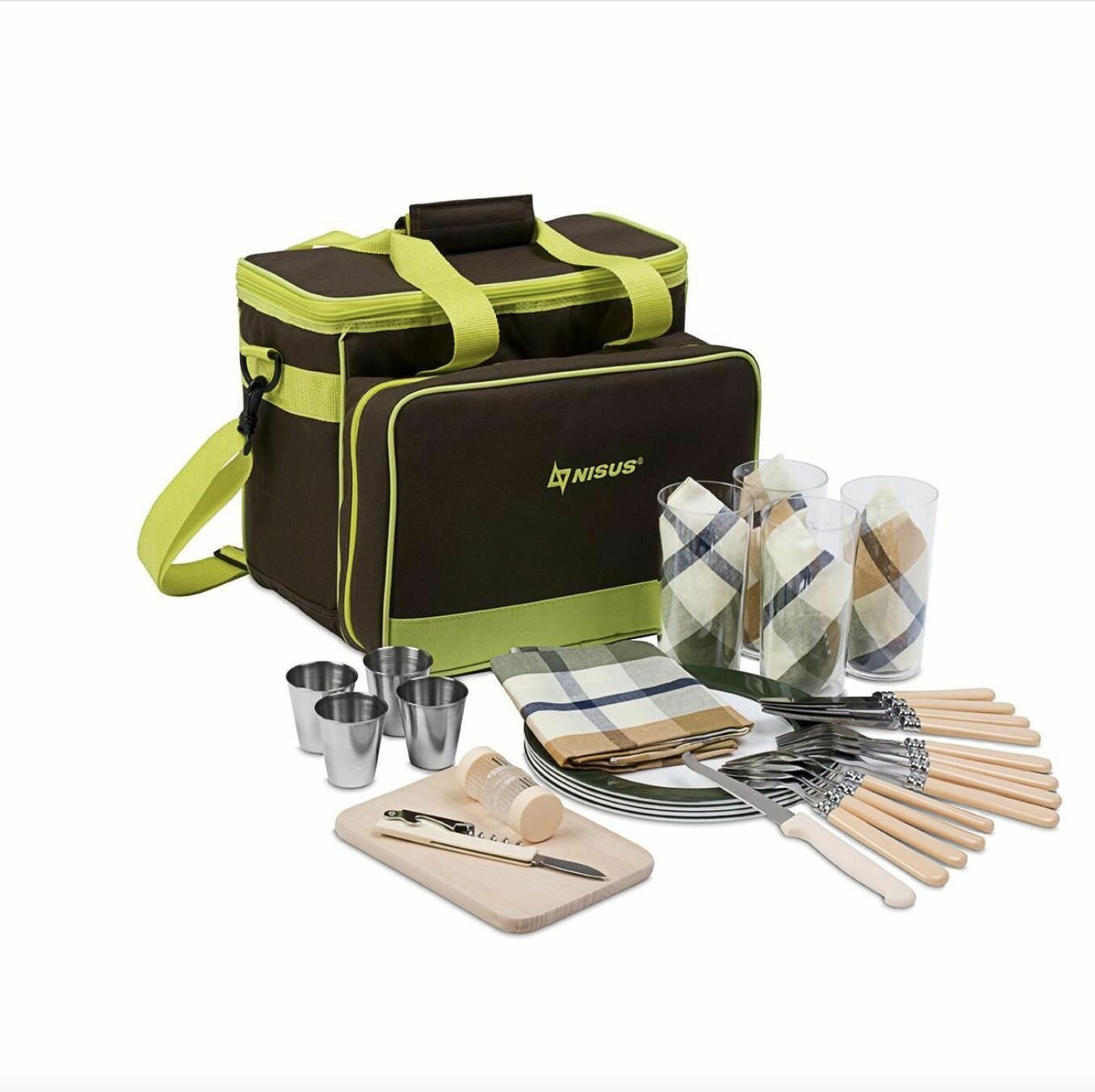 | Комплектация | 2 тарелки, 2 бокала, 2 стопки, 2 ложки, 2 вилки, 2 ножа, 1 разделочный нож, 1 штопор-открывашка, 1 доска разделочная, 1 солонка, 1 скатерть, 2 салфетки. Большое теплоизолированное основное отделение под продукты. |