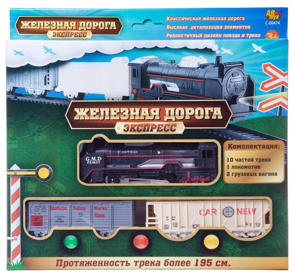 10 цен на Железная дорога ABtoys Экспресс 210 см функц. 13 предметов C-00474