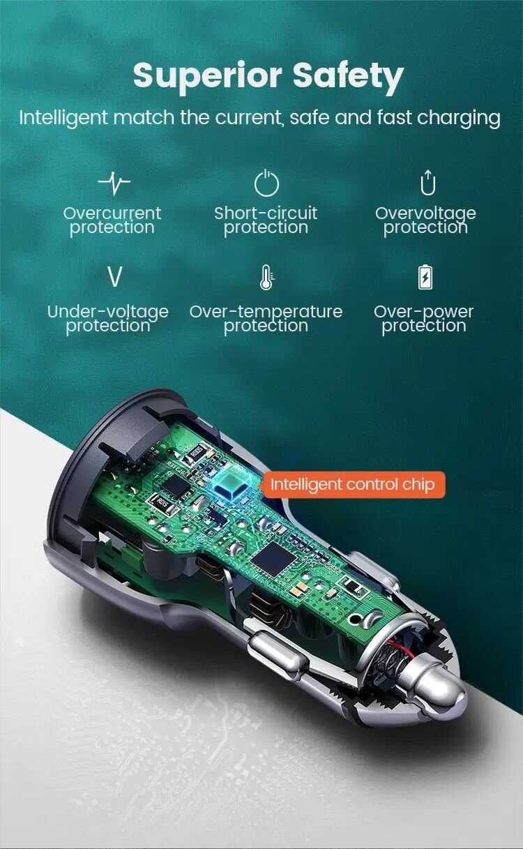 Автомобильное зарядное устройство UGREEN CD213 информация: