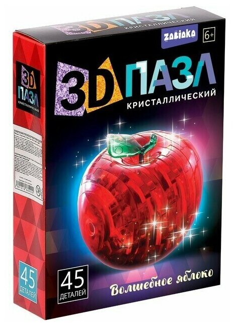 Пазл 3D кристаллический Яблоко 45 деталей свет от батареек информация: