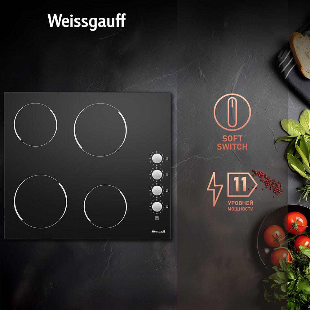 Варочная панель WEISSGAUFF HV 640 BK, электрическая, черный 25 349 ₽