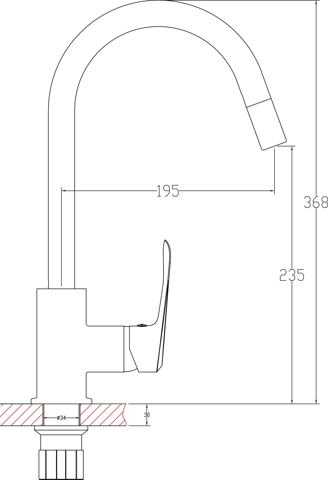 | Длина излива | 195 мм |