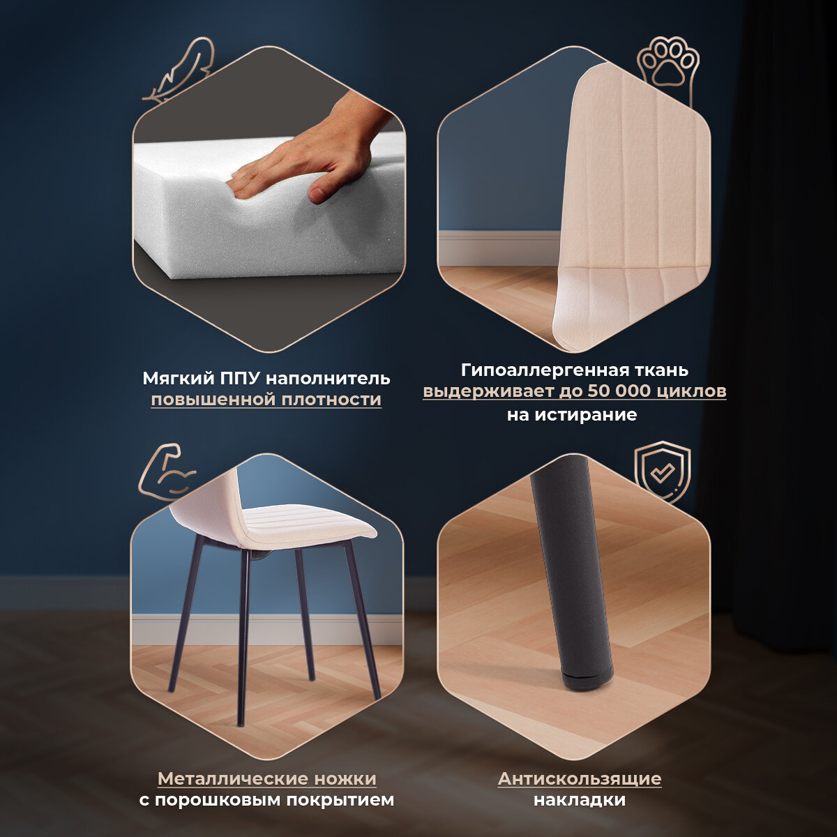 Стул обеденный ARC светло-бежевый ткань, ножки металл черный, T-17278 5 174 ₽