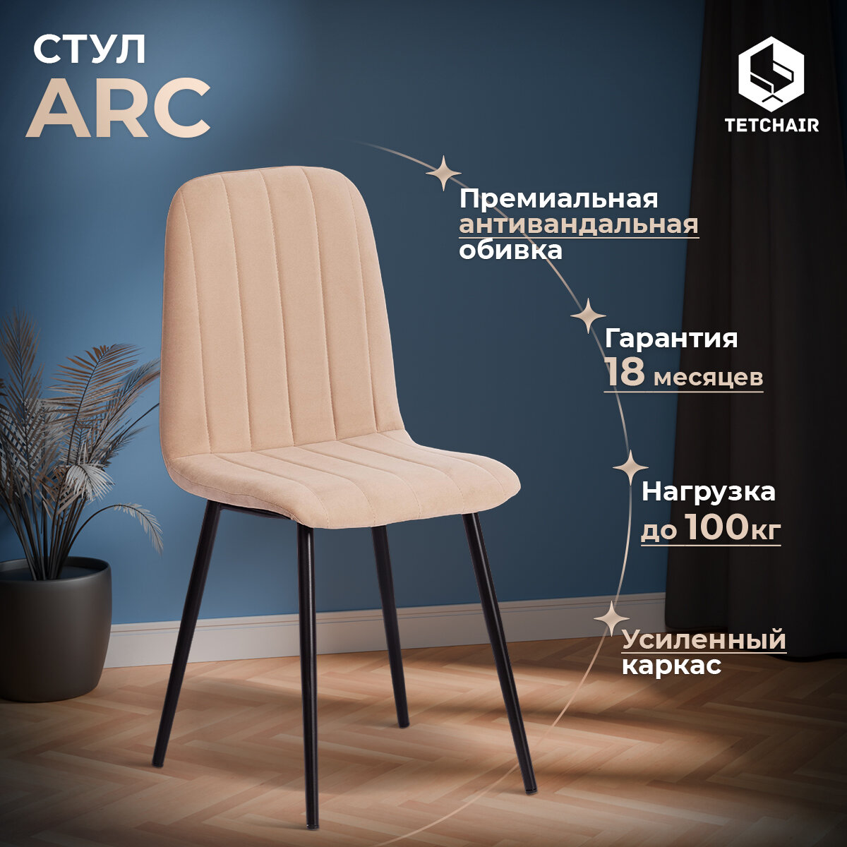 Отзывы на Комплект стульев со спинкой TetChair ARC, 4шт.,, велюр, бежевый/черный