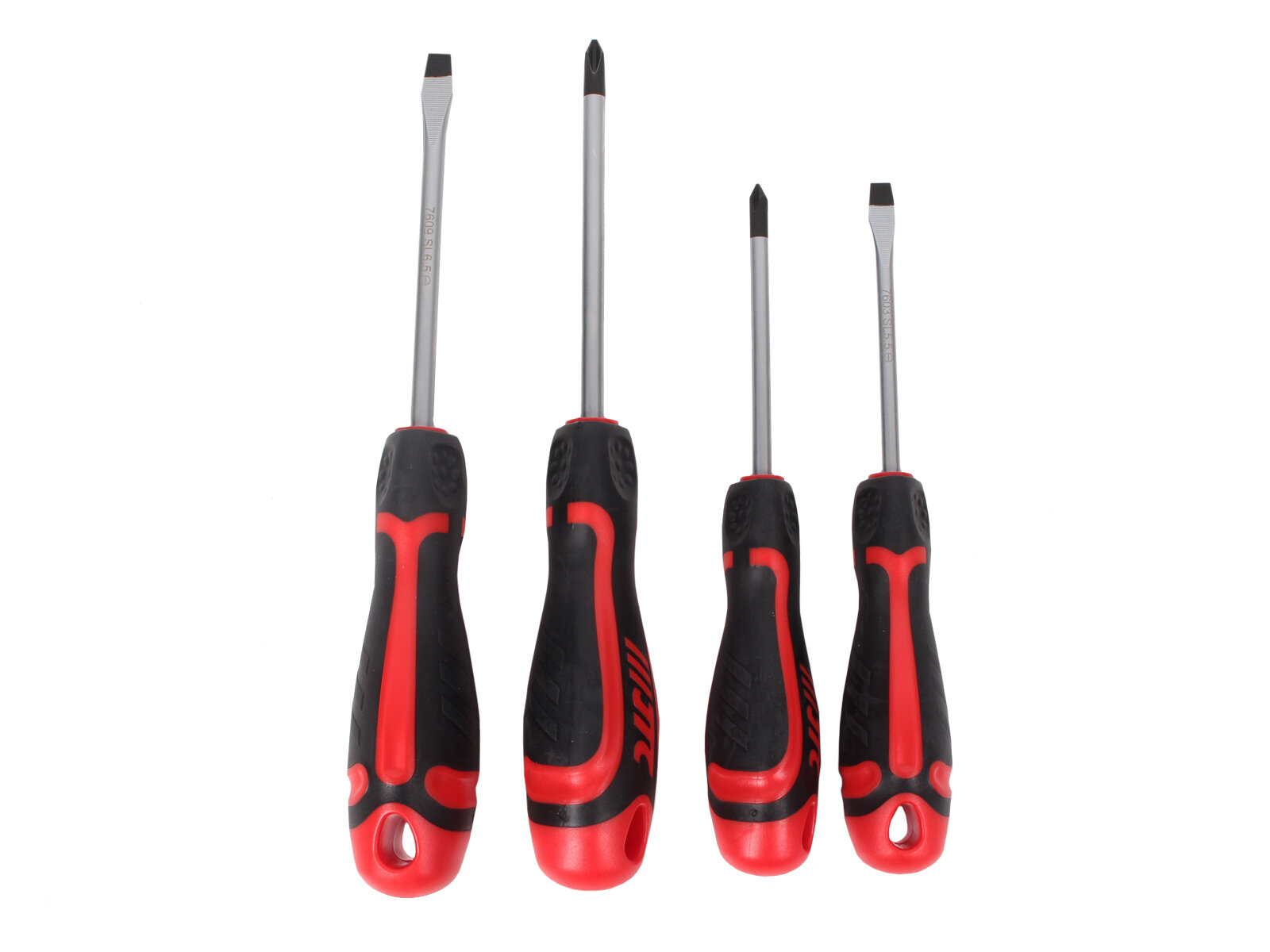 Набор отверток усиленных, 4 предмета SL5.5x75, SL6.5x100, PH1x75, PH2x100 JTC-7641