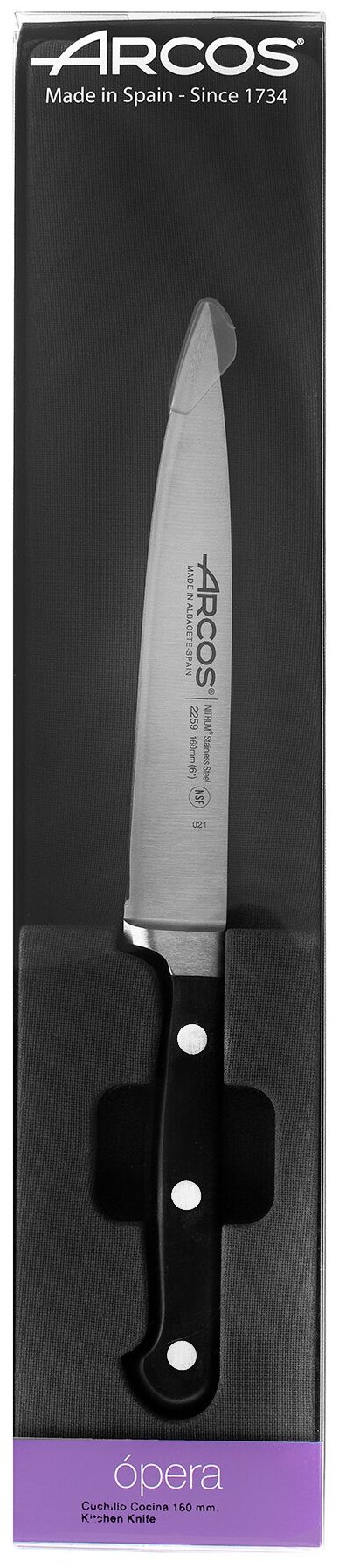 Универсальный кухонный нож Arcos Opera 16 см, кованая молибден-ванадиевая нержавеющая сталь X45CrMoV15, 225900 информация: