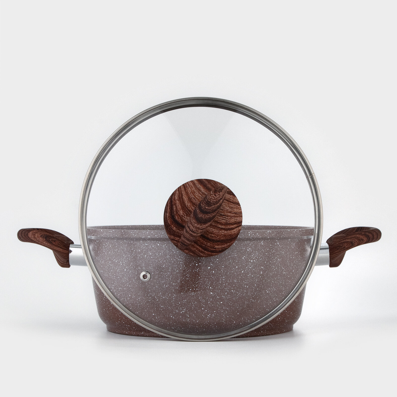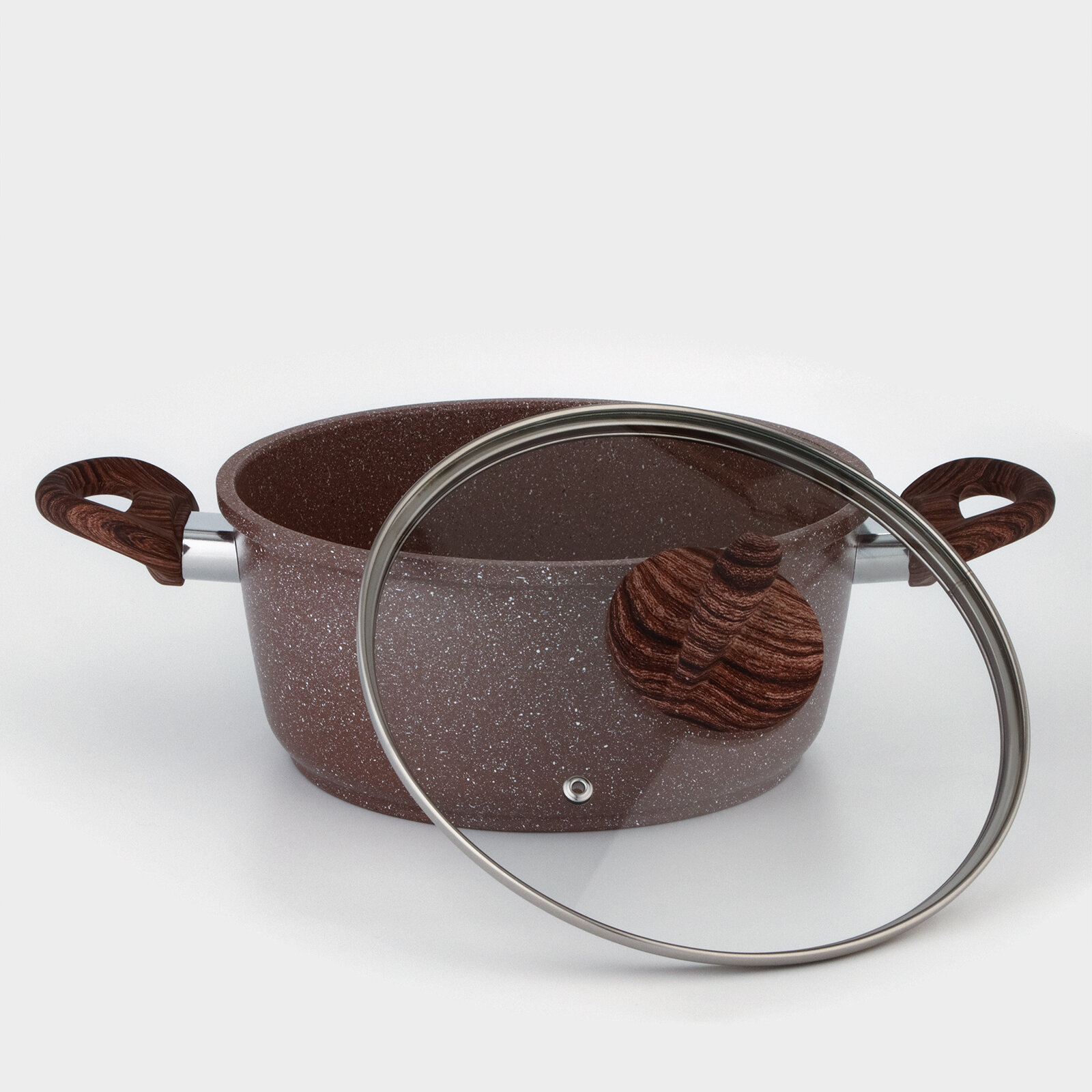 10 цен на Кастрюля Доляна Брауни, 3,3 л, d=24 см, h=10 см, стеклянная крышка, антипригарное покрытие, индукц .