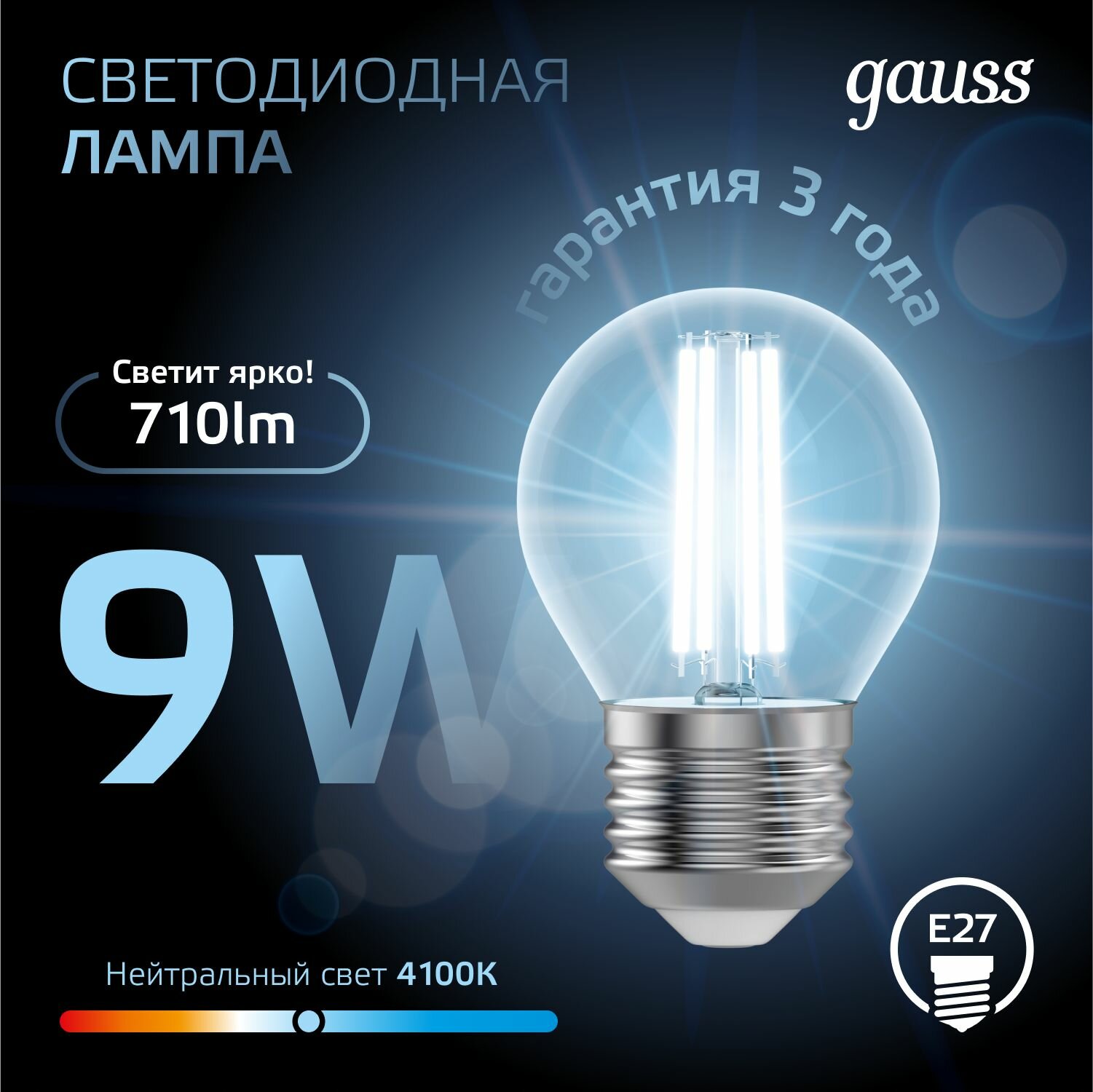 Отзывы на Лампочка светодиодная E27 Шар 9W нейтр белый свет 4100К упаковка 10 шт. Gauss Black Filament