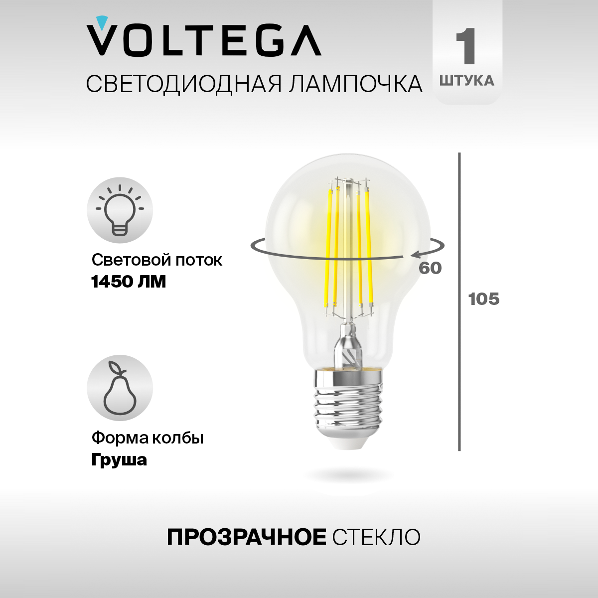 VOLTEGA Лампа светодиодная филаментная Voltega E27 15W 2800К прозрачная VG10-A1E27warm15W-F 7104 525 ₽