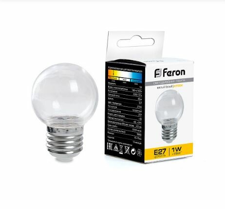 Лампа светодиодная Feron LB-37 Шарик прозрачный E27 1W 230V 2700K 38119 5шт информация: