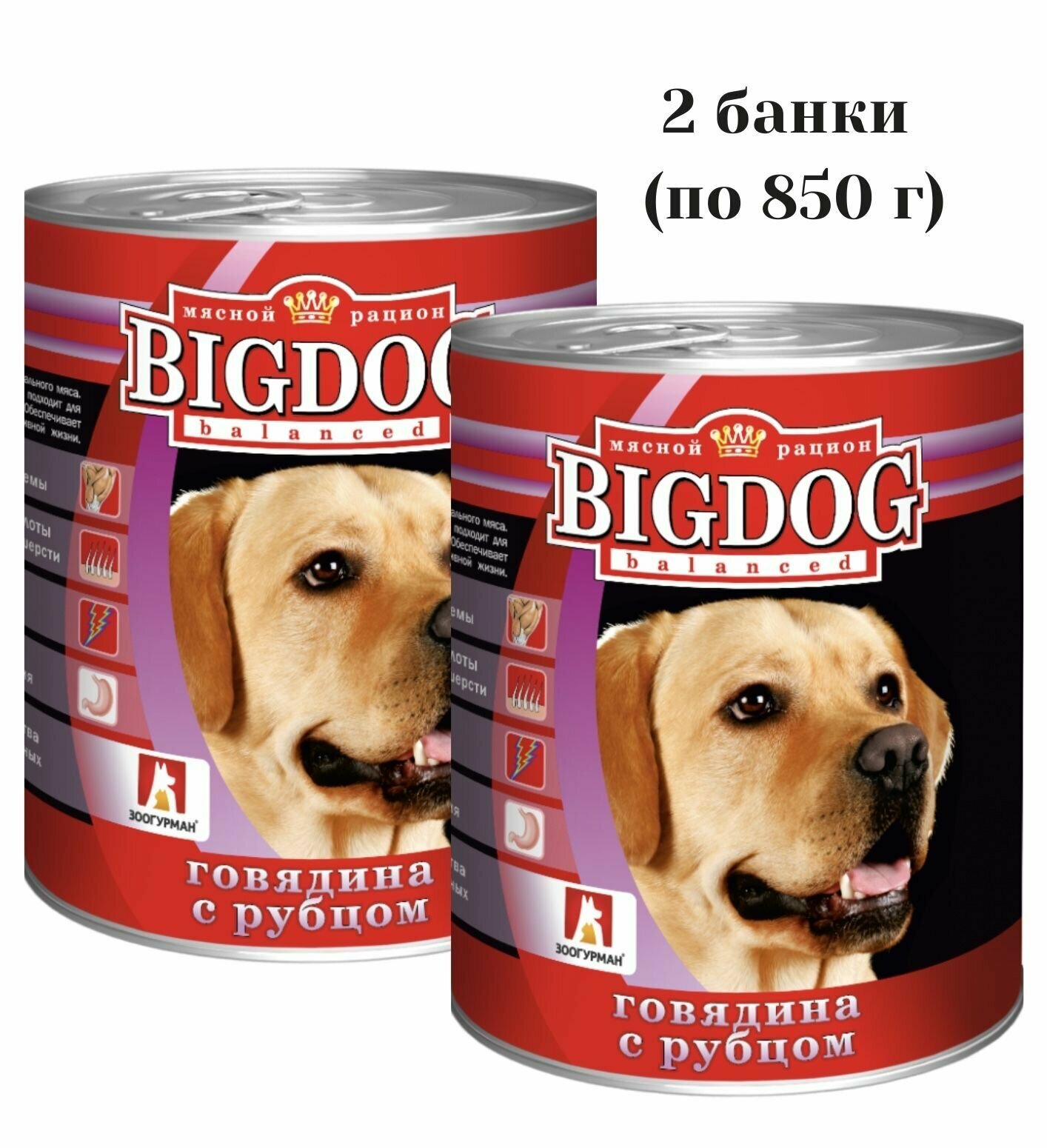 Влажный корм для собак зоогурман Big Dog Говядина с рубцом 850 г, (2 шт) информация: