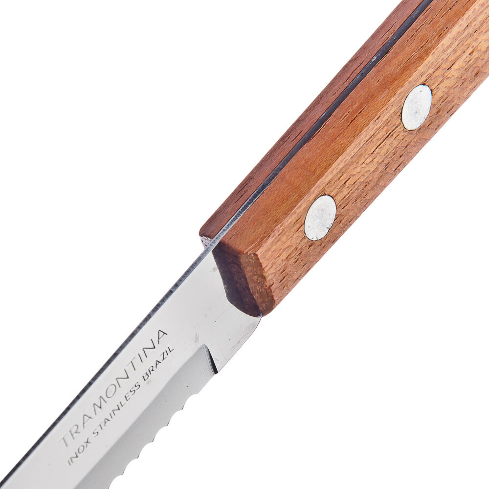 10 цен на Нож кухонный для мяса, стейка с зубцами 12,7 см Tramontina Dynamic, деревянная ручка, 2 шт на блистере