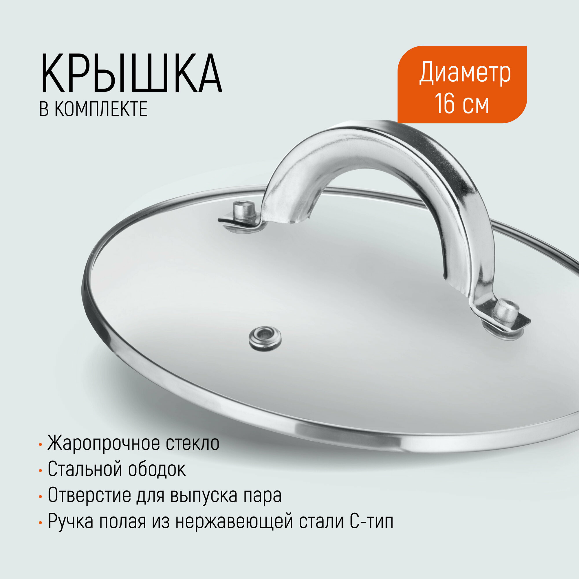 Кастрюля Mediano из нержавеющей стали с крышкой, объем 2,6 л, диаметр 18 см 1 112 ₽