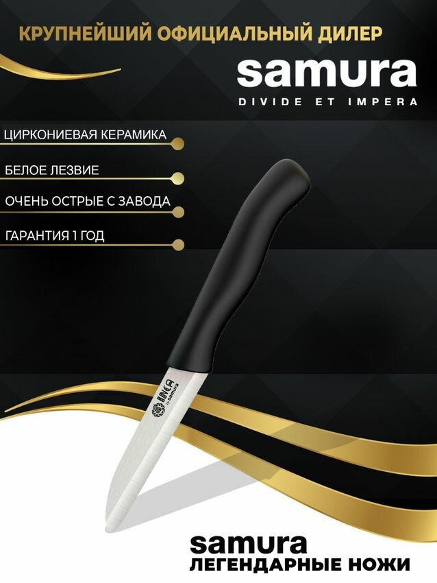 Керамический нож для овощей и фруктов кухонный Samura INCA 75мм SIN-0011BL