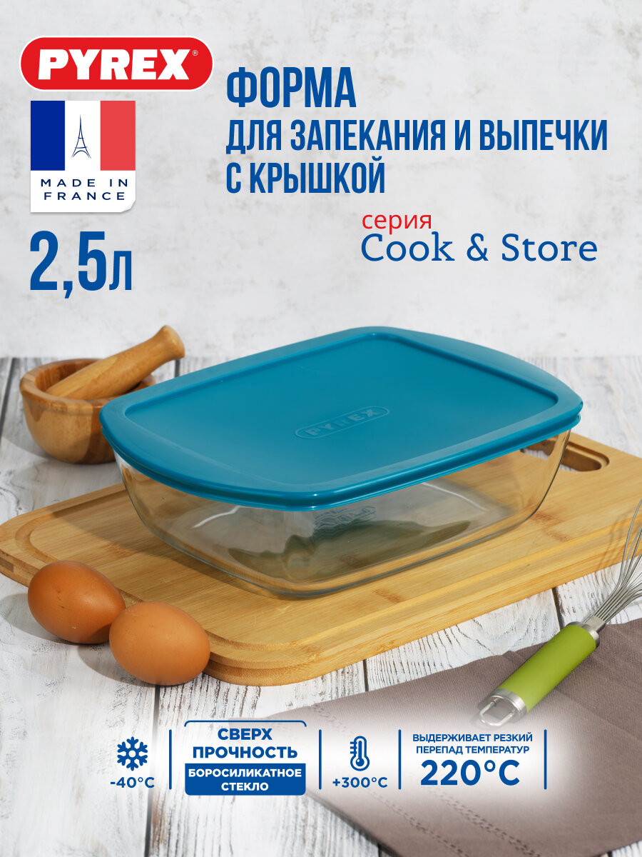 Блюдо с крышкой для запекания и выпечки Pyrex Cook&Store 28х20x8см 2.5л прямоугольное 1 433 ₽