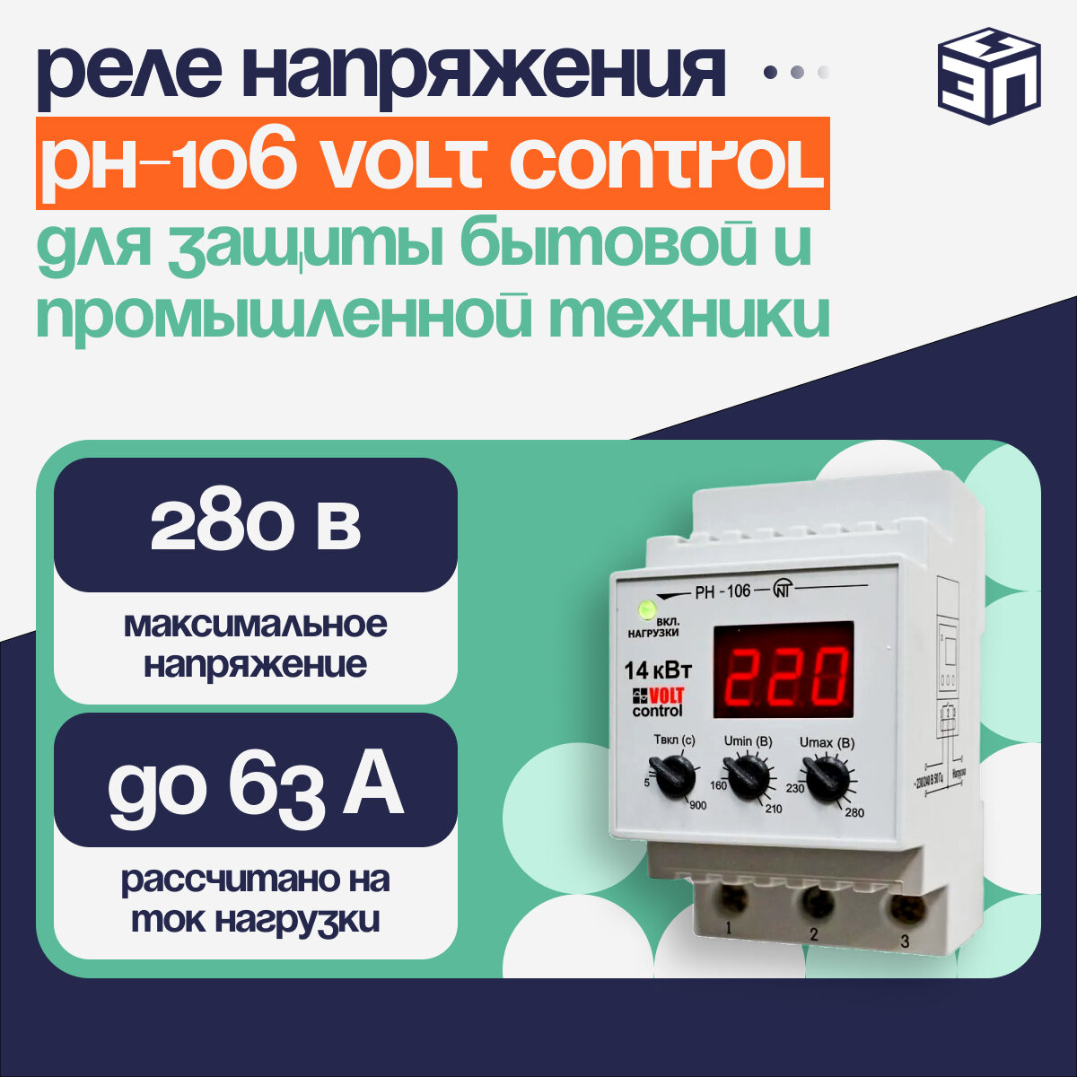 Реле контроля напряжения РН-106 220 В Новатек-Электро однофазное 63А 14 кВт