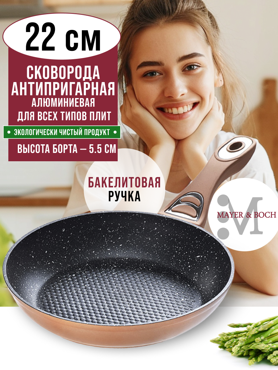 Сковорода алюминиевая Mayer&Boch 22 см с антипригарным мраморным покрытием, цвет бронза 27506 1 449 ₽