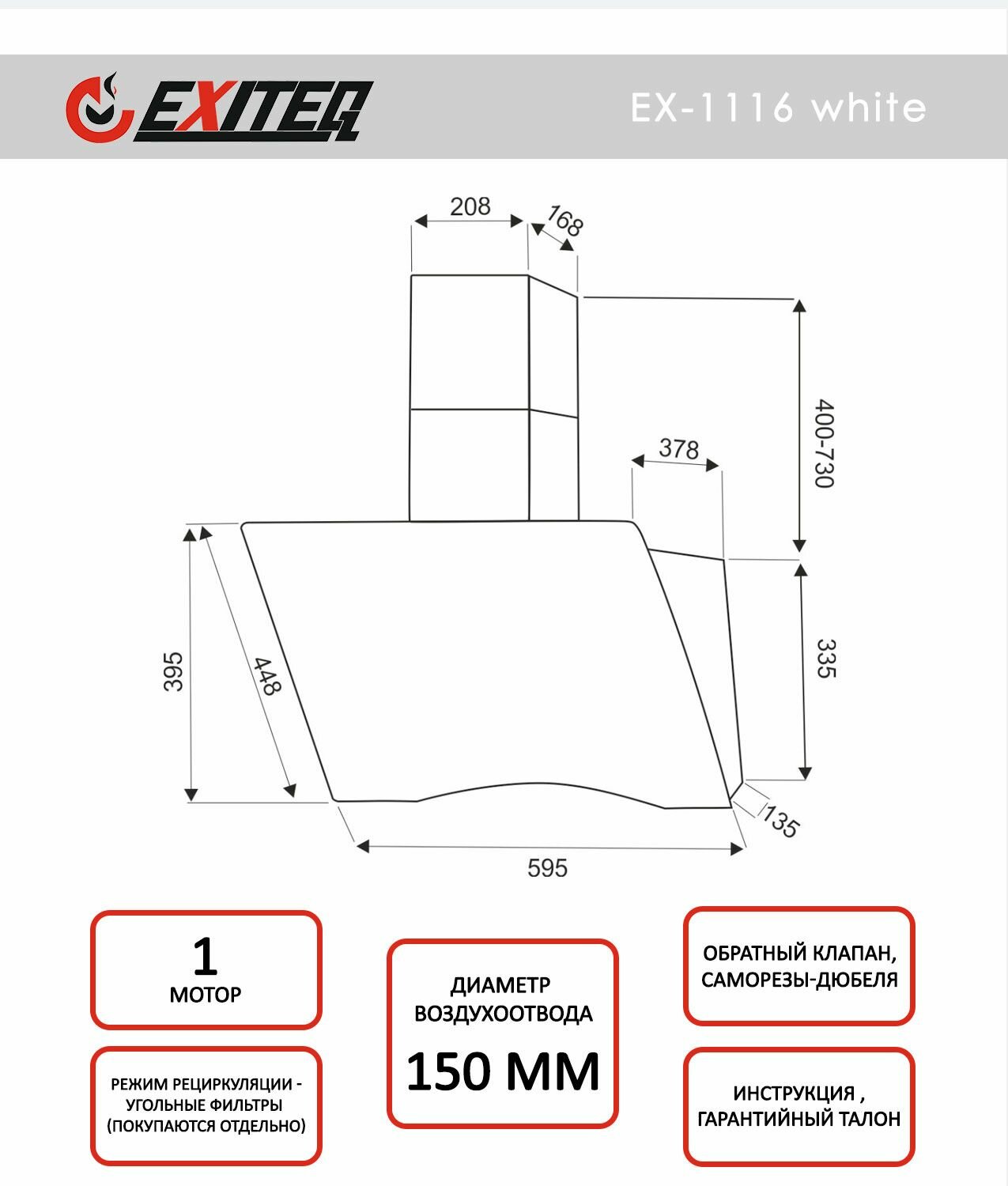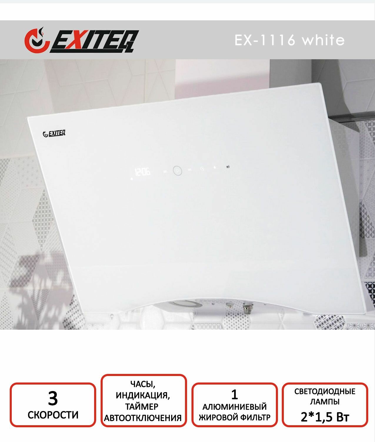 Кухонная вытяжка Exiteq EX-1116 white информация: