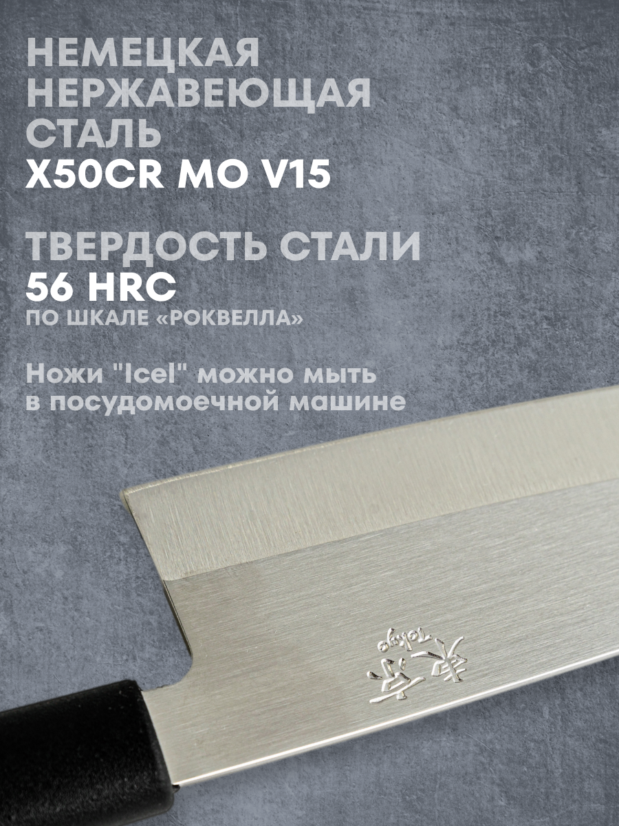Нож японский Усуба 180/310 мм, ICEL, цвет черный, нержавеющая сталь 5 827 ₽