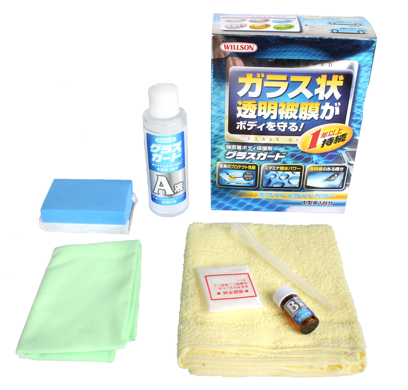 | Дополнительная информация | обьем - 110 мл (состав A) + 4,5 мл (состав B); структура - состав А - алкосилан, алкоксисилокан, изопарафин, нонан, диоксид кремния; состав B - органометаллический состав, 1-бутанол; расход средства - примерно 50 мл на 1 легковой автомобиль; сохранение защитных свойств - защита кузова - до 1 года, блеск и гидрофобность - до 6 месяцев; срок годности - 5 лет (дата изготовления указана на упаковке); сертификат - Willson Co. Ltd. 6-13, Saginomiya-1-Chome, Nakano-ku, Tokyo 165-0032 |