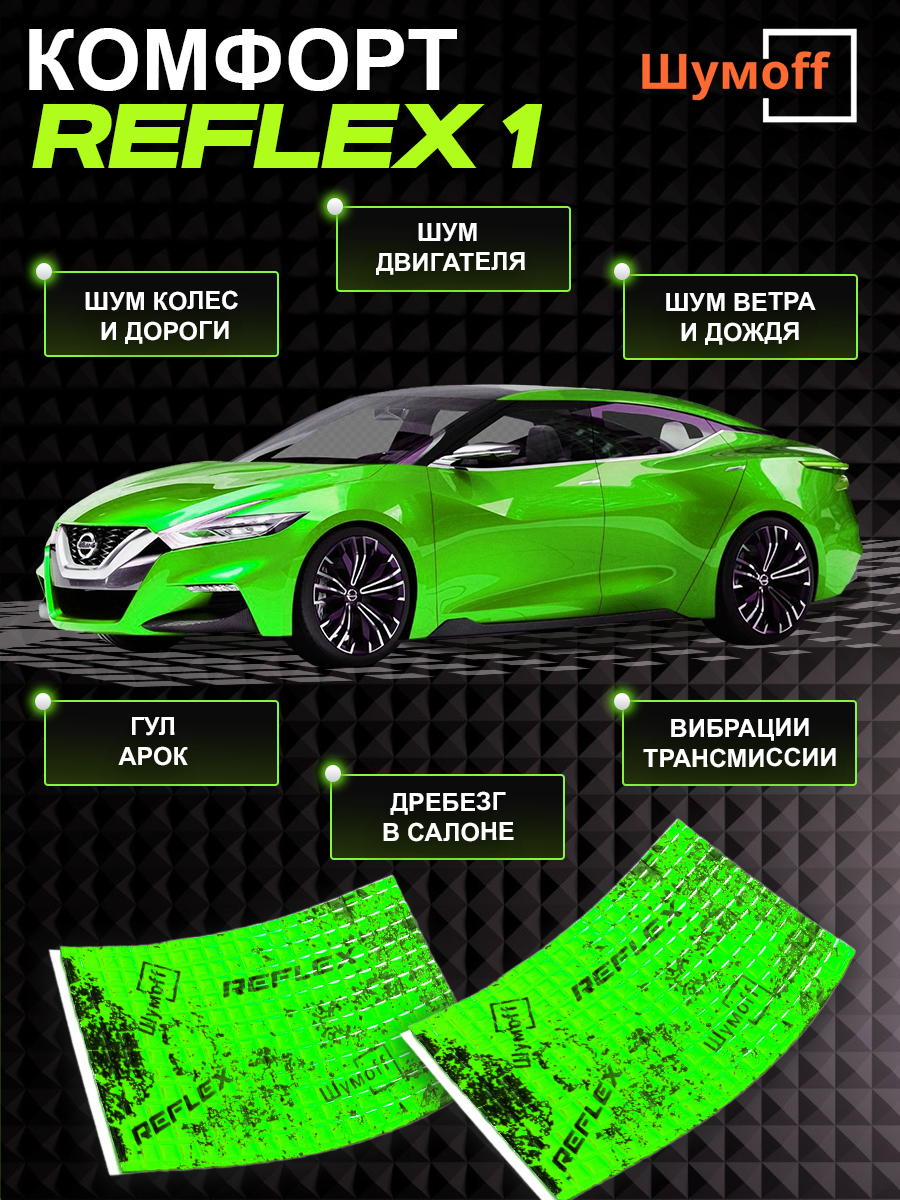 Шумофф Reflex 4 - 14 листов Виброизоляция для автомобиля - для пола, дверей, капота, багажника - толщина 3.6 мм 1 554 ₽
