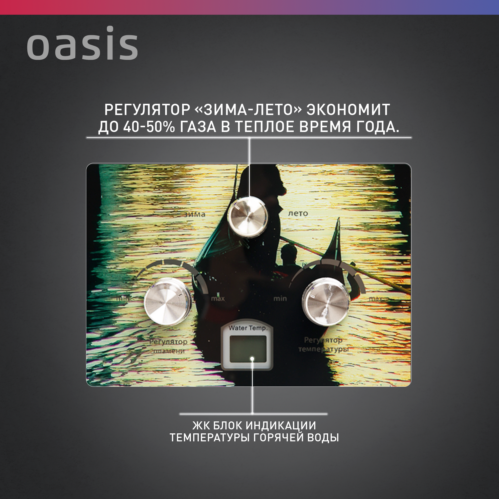 Газовая колонка для воды / водонагреватель проточный газовый "Оазис" серия Glass 20 RG